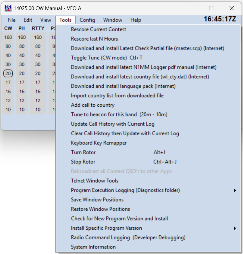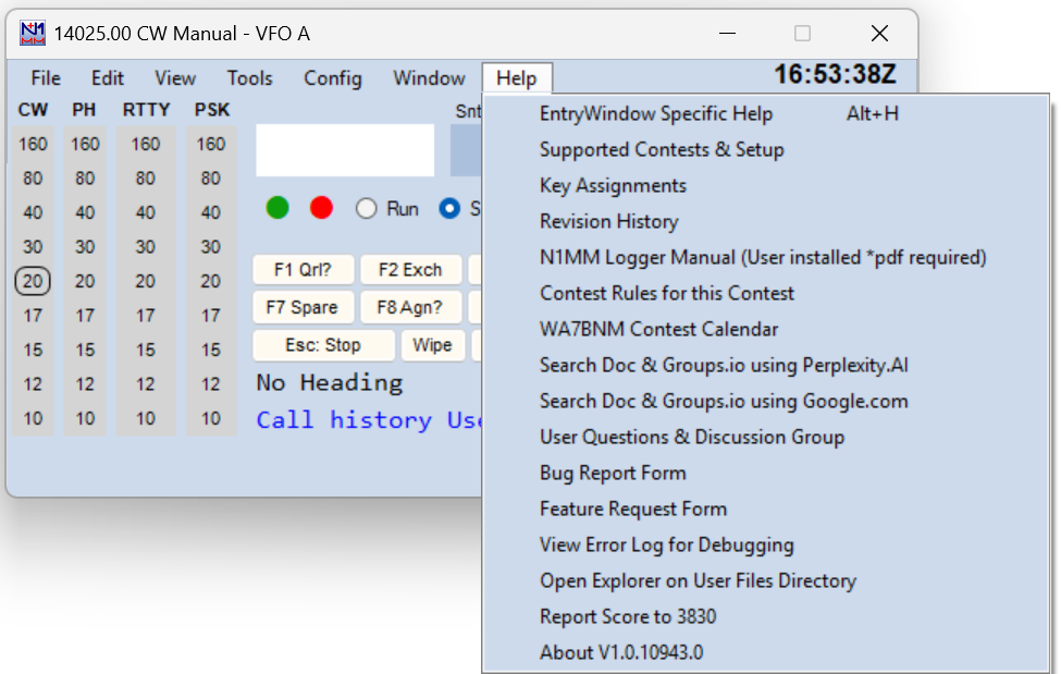 - Supported Contests & Setup – Shows the Supported Contests chapter of the on-line manual. Requires an active Internet connection