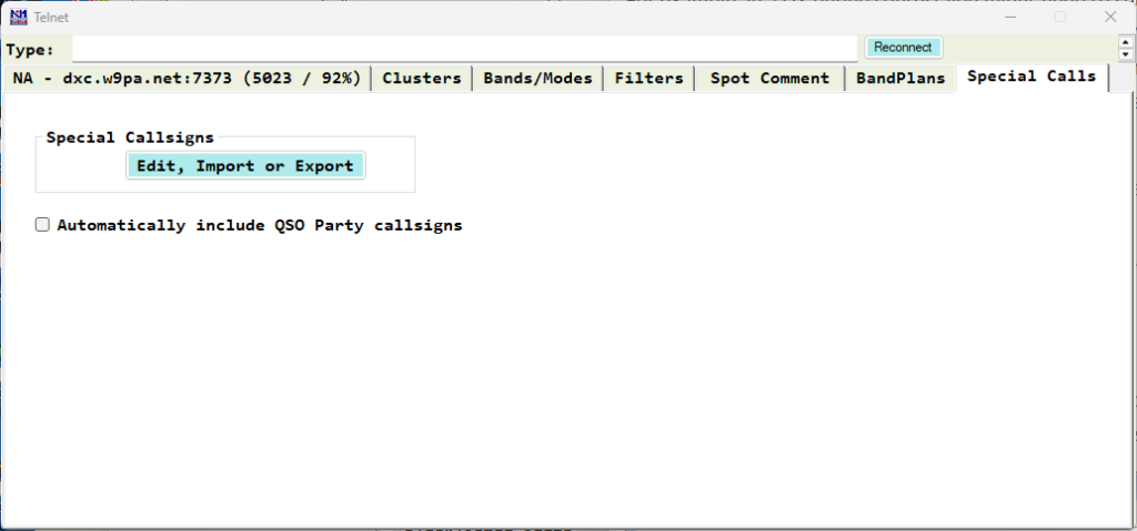- A checkbox to format some commands properly when you are connecting to a DXSpider cluster.